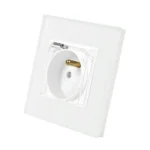 Kompletne gotowe do podłączenia gniazdo podwójne z bolcem z ramką szklaną w kolorze białym matowym!