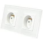 Kompletne gotowe do podłączenia gniazdo podwójne z bolcem z ramką szklaną w kolorze czarnym!