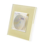 Ramka szklana w kolorze złotym o wymiarach 86×86 mm;