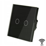 Kompletny gotowy do podłączenia włącznik światła WiFi dotykowy podwójny (dwuobwodowy) z panelem szklanym w kolorze szarym i podświetleniem LED!